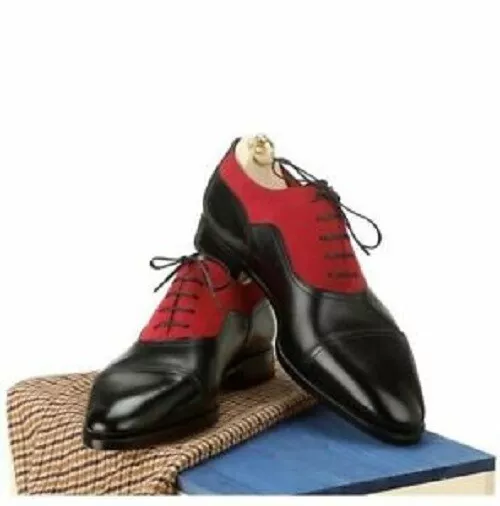 Handmade Men Two Tone Red And Black Formal Shoes, Men's Oxford Dress Shoes