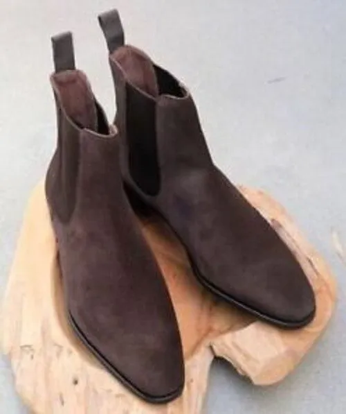Handmade Men Brown Suede Chelsea Boot, Men Brown Ankle Dress Boot