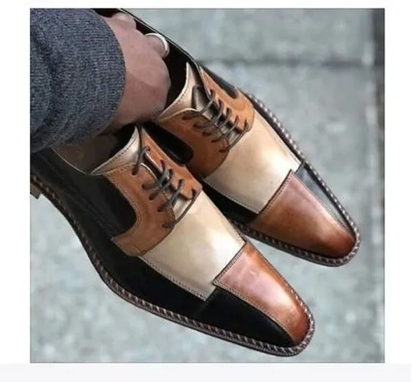 Handmade Men 3 Tone Shoes, Dress Formal Shoe, Real Leather Lace Up Shoe, Gift