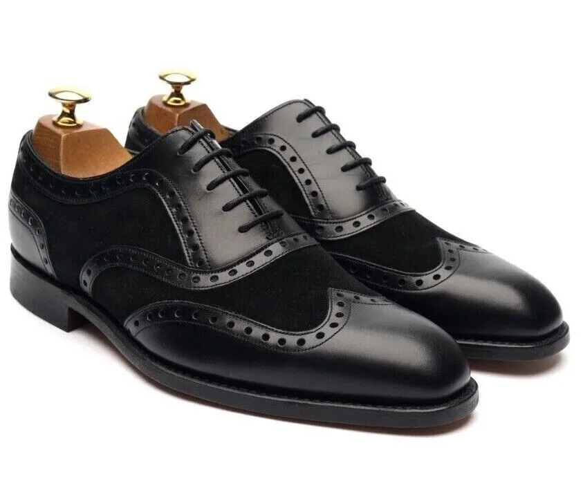Handmade Men Black wing tip brogue dress shoes, Men classic business shoes