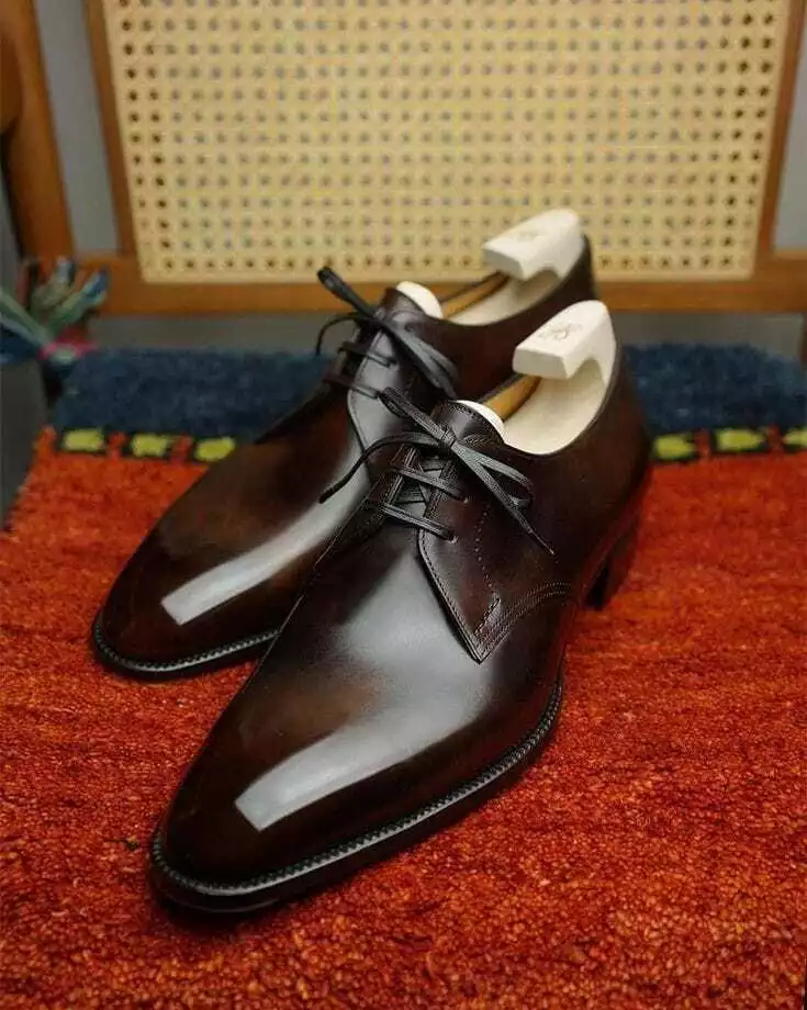 New Handmade Men's Chocolate Brown Leather Derby Lace Up Dress Formal Shoes