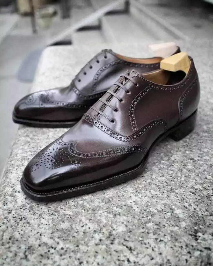 Handmade Men's Dark Brown Leather Oxford Lace Up Chiseled Toe Dress Formal Shoes
