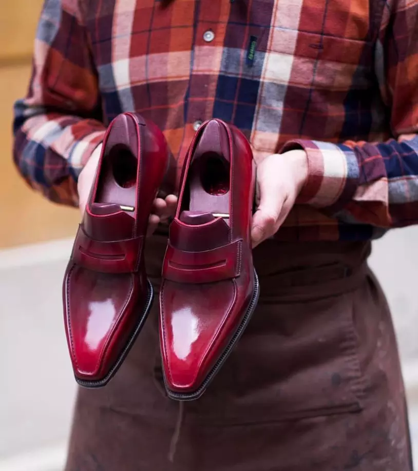 Men Handmade Penny Loafer Burgundy Cowhide Leather Moccasins Dress Formal Shoes