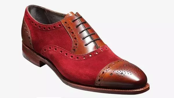 Handmade Men Two Tone Red Brown Oxford Brogue Cap Toe Suede Genuine Leather Lace
