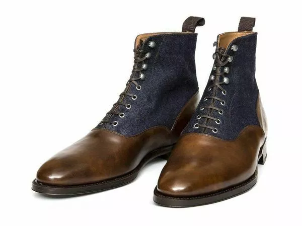 Men's Handmade Two tone Ankle boots, Brown and Blue casual boots