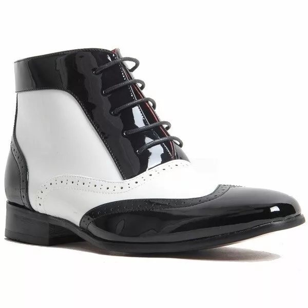 Men's Two Tone Black White High Ankle Wing Tip Magnificent Leather Boots