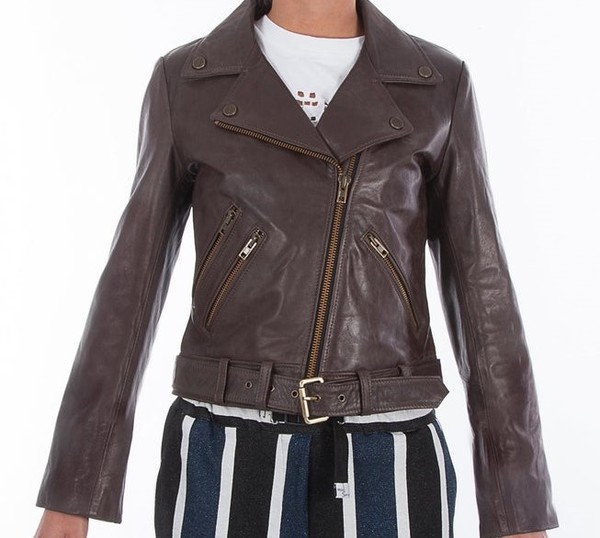 Women genuine soft leather biker jacket slim fit color Natural Dark Brown veg tanned